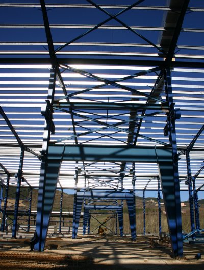 A set of rafters - pillars and roof-beams that make up the structure and support. The assembly - assembly and welding - the plates that make each profile are made in the SAW at Anuri, being welded on both sides avoiding welding tensions seen on typical traditional pre-amrmed welding.